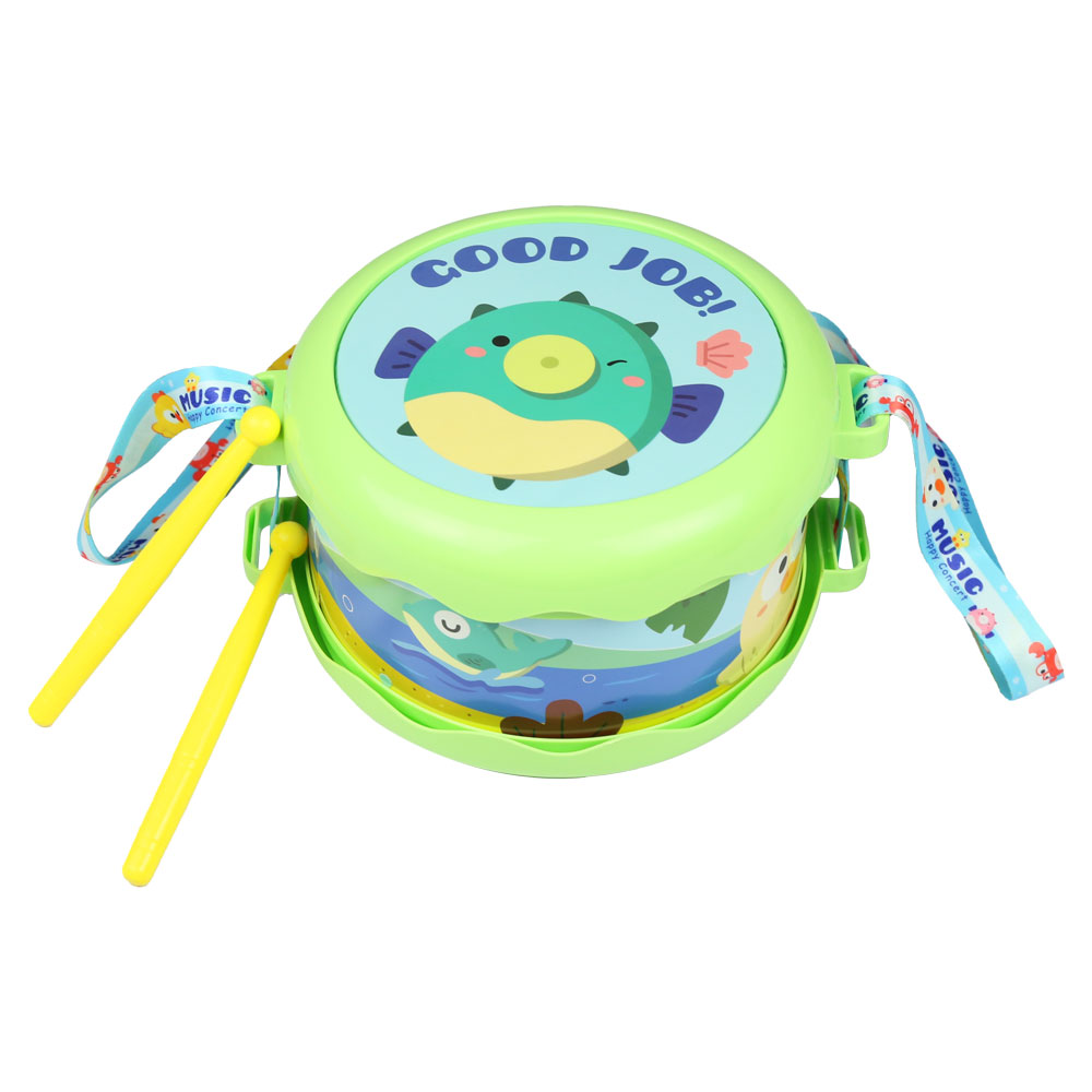 - Trải nghiệm thực tế: Chiếc trống đi kèm dây đeo tiện lợi, giúp bé có thể đeo lên cổ và biểu diễn như một tay trống thực thụ, tăng thêm sự hứng thú khi chơi.