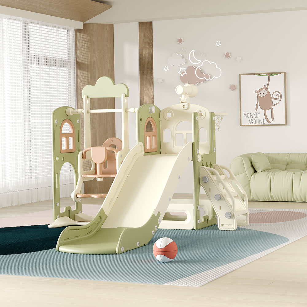 Cầu trượt-khung thành-bóng rổ 2017 xanh TOBEBE VBC-CHD-156